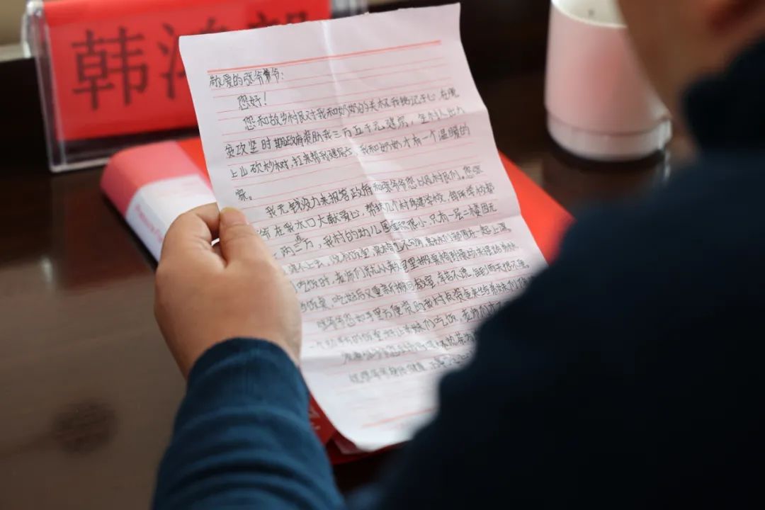 在捐贈現(xiàn)場,一位82歲的侗族殘疾老奶奶帶來了相依為命的孫子寫的一封感謝信,黎平縣政協(xié)副主席韓鴻毅親自朗讀,為大家分享這個小學(xué)生的感謝信,童言童語情真意切,感人至深。