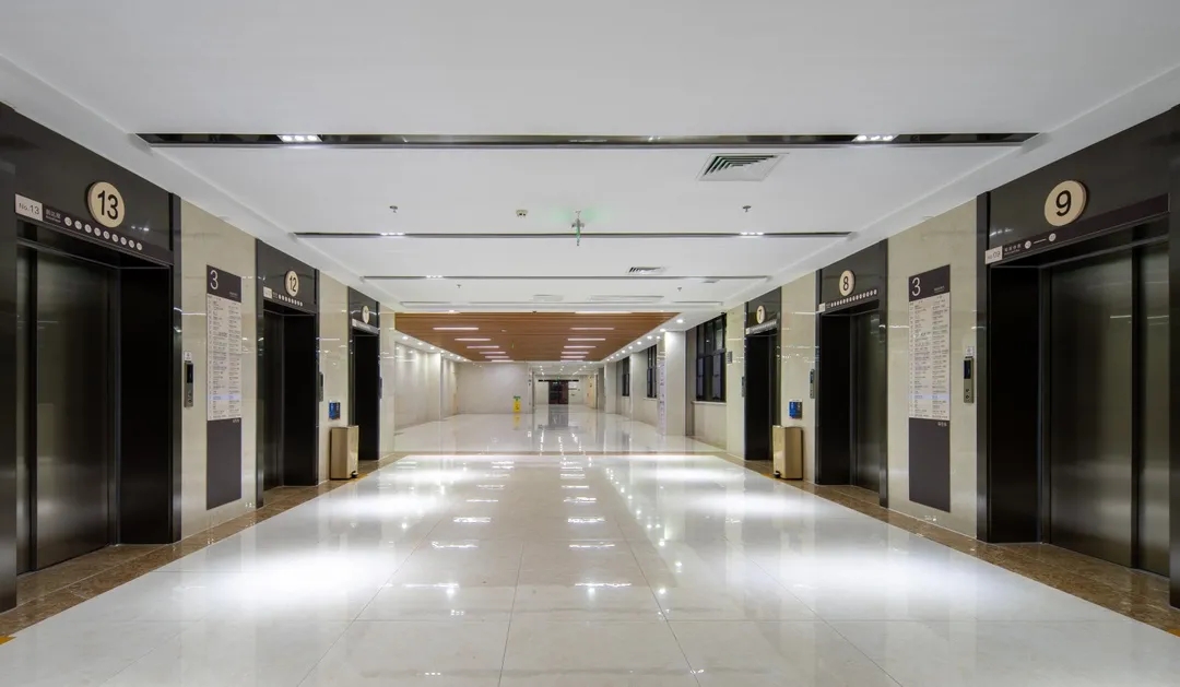 住院樓走廊采用礦棉吸音板吊頂,防火吸音性能好,同時,該產品具有不燃性能,提高了醫院的防火安全性。地面采用PVC地板膠,防滑耐磨、吸音減震,是建設現代化醫院的環保用材。