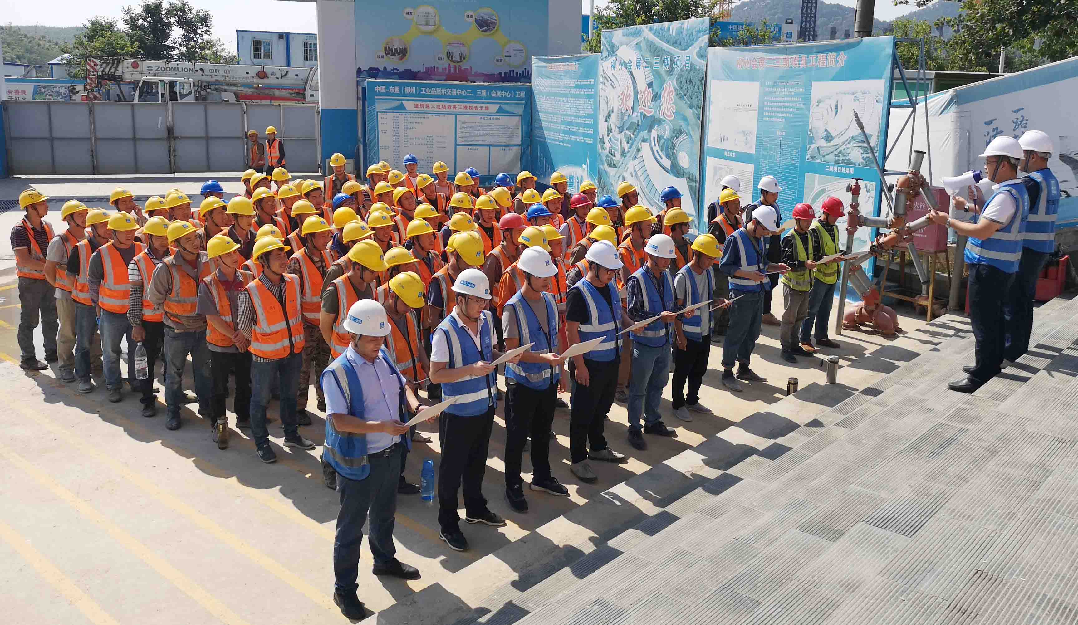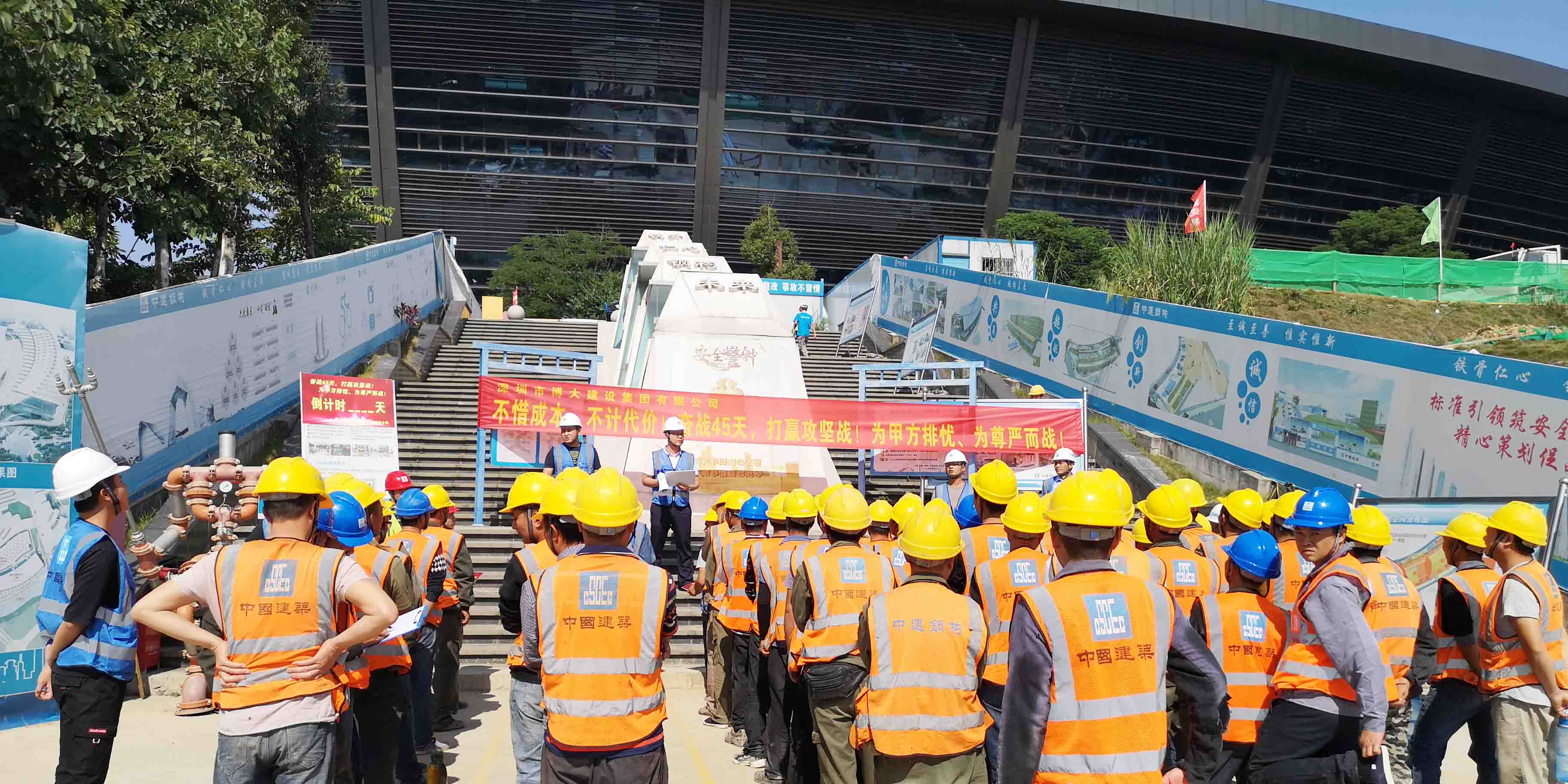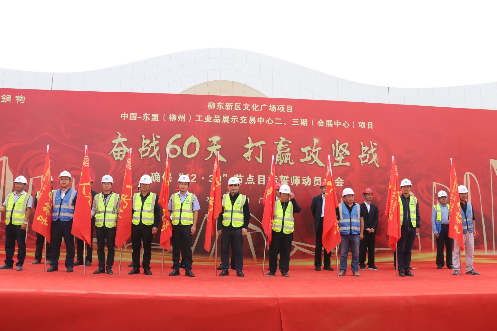 奮戰45天,博大鐵軍誓言打贏柳州會展項目攻堅戰——中國-東盟(柳州)工業品展示交易中心項目部舉行攻堅誓師大會