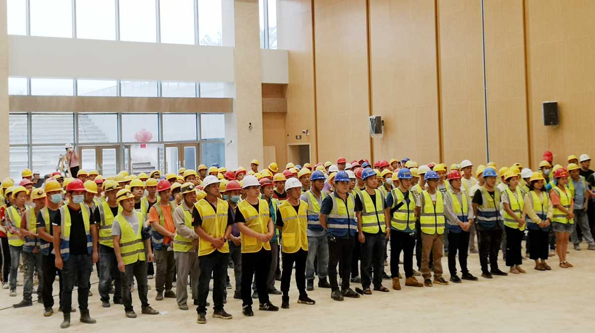 大雪壓青松,青松挺且直。雖然面臨著施工區域近10萬㎡、多專業施工交叉作業、工期緊、魯班獎質量標準要求、洪澇災害影響材料進場等重重困難,博大鐵軍不畏艱險、迎難而上,舉行誓師大會,統一思想、傳遞信心、堅定信念,將履約視為生命,向甲方莊重承諾。
