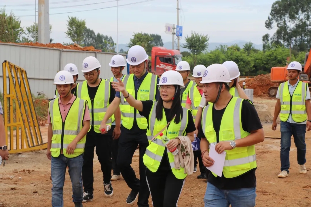 圖丨集團(tuán)副董事長黃河(后排右五)、廣西分公司總經(jīng)理李培陽(后排右四)視察項目