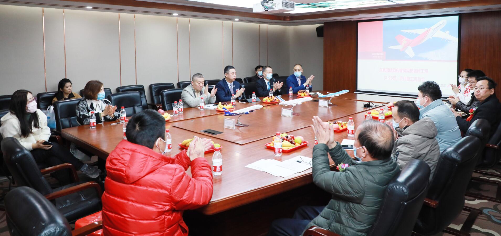 2021年1月14日,在開完深航國際酒店客房局部裝修工程第一次工地會議后,集團(tuán)副董事長黃河、第三戰(zhàn)區(qū)總經(jīng)理徐朝華與深航基建處副總經(jīng)理陳新、深航基建處工程管理中心譚波、深航酒店副總經(jīng)理肖強(qiáng)、深圳市中安項(xiàng)目管理有限公司總經(jīng)理趙坤強(qiáng)等一行領(lǐng)導(dǎo)參加了深航國際酒店開工典禮剪彩儀式。