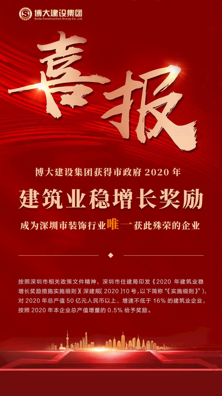 行業唯一 | 博大榮獲深圳市政府2020年建筑業穩增長獎勵