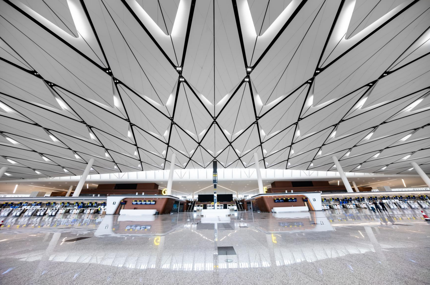 成都天府國(guó)際機(jī)場(chǎng)為4F級(jí)國(guó)際機(jī)場(chǎng)、是絲綢之路經(jīng)濟(jì)帶中等級(jí)最高的國(guó)際航空樞紐之一,中國(guó)首個(gè)“手拉手式”航站樓,總面積71萬(wàn)㎡,每座航站樓有3萬(wàn)㎡的羽毛狀吊頂與“太陽(yáng)神鳥(niǎo)”的整體造型呼應(yīng) 。航站樓共設(shè)置83個(gè)廊橋機(jī)位,能夠滿足2025年2800萬(wàn)人次國(guó)內(nèi)旅客吞吐量和1200萬(wàn)人次國(guó)際旅客吞吐量的需求。預(yù)計(jì)本月開(kāi)通運(yùn)營(yíng)。