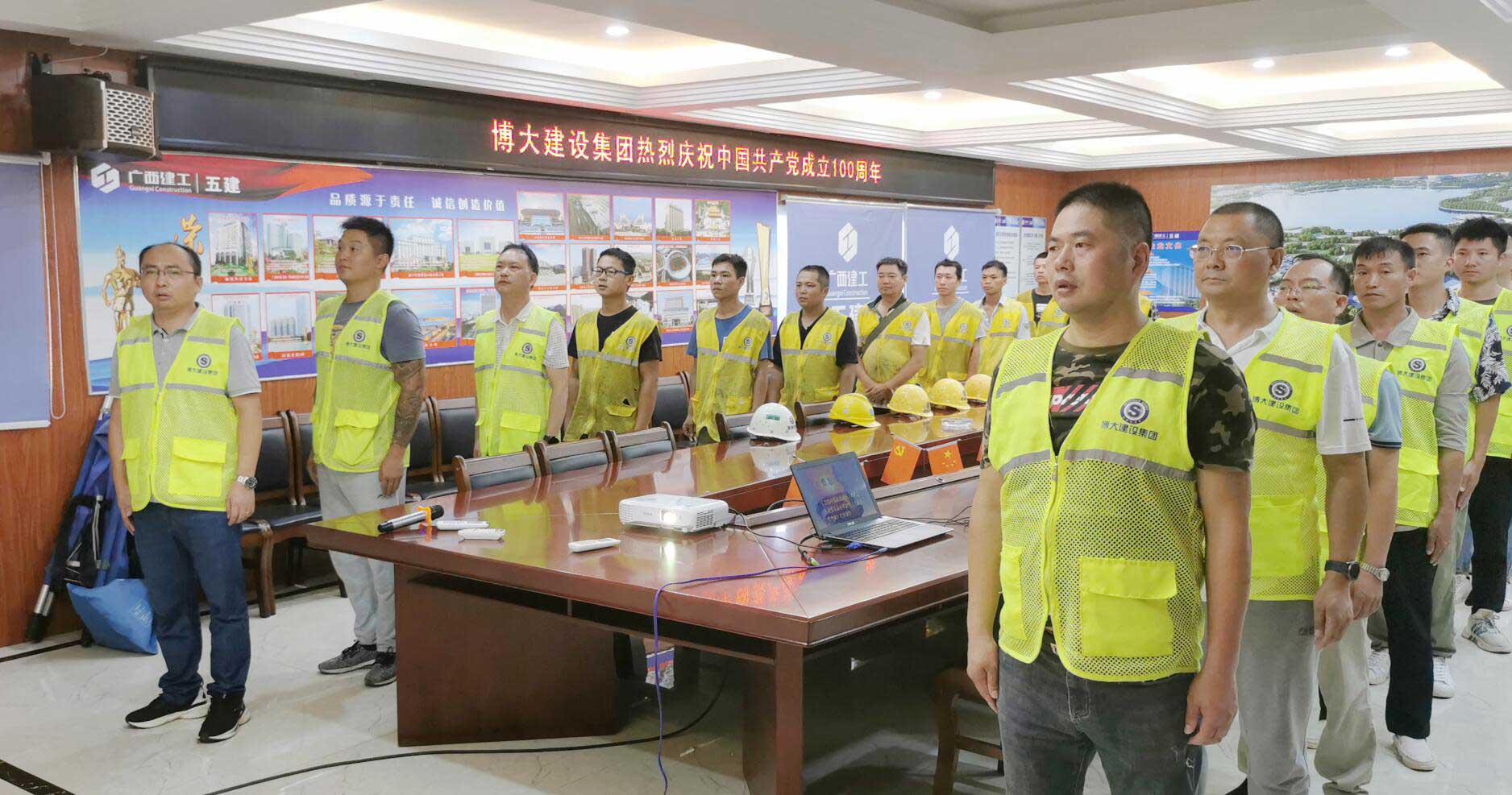 在這舉國歡慶的時刻,博大建設(shè)集團(tuán)掀起了“仰望黨旗、向黨致敬”的活動熱潮。在集團(tuán)董事會、黨支部的帶領(lǐng)下,總部辦公人員與廣布在全國各地的項(xiàng)目部隔空連線,高聲齊唱《沒有共產(chǎn)黨就沒有新中國》,向黨的百年華誕獻(xiàn)禮,表達(dá)博大人的崇高敬意和熾熱的愛黨、愛國情懷。