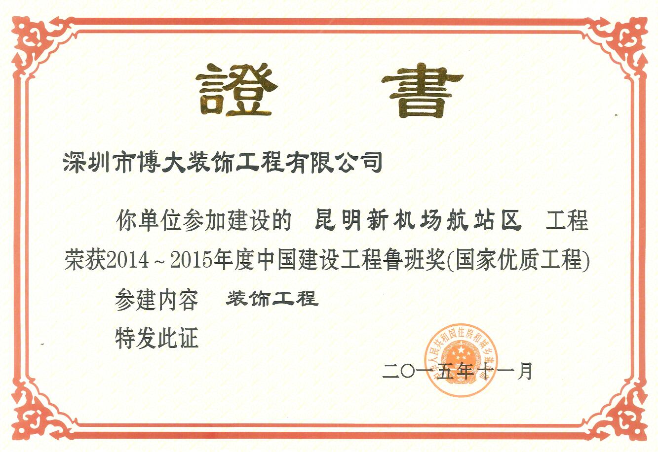 博大以精益求精的工匠精神成就大國品質(zhì),榮獲中國建筑裝飾最高獎(jiǎng)——魯班獎(jiǎng)、中國建筑裝飾工程獎(jiǎng),博大被云南省委、省政府授予“先進(jìn)集體嘉獎(jiǎng)”榮譽(yù)稱號。